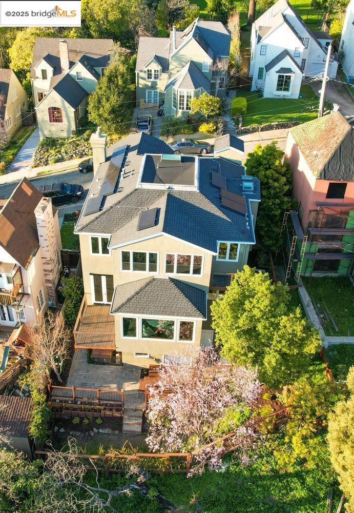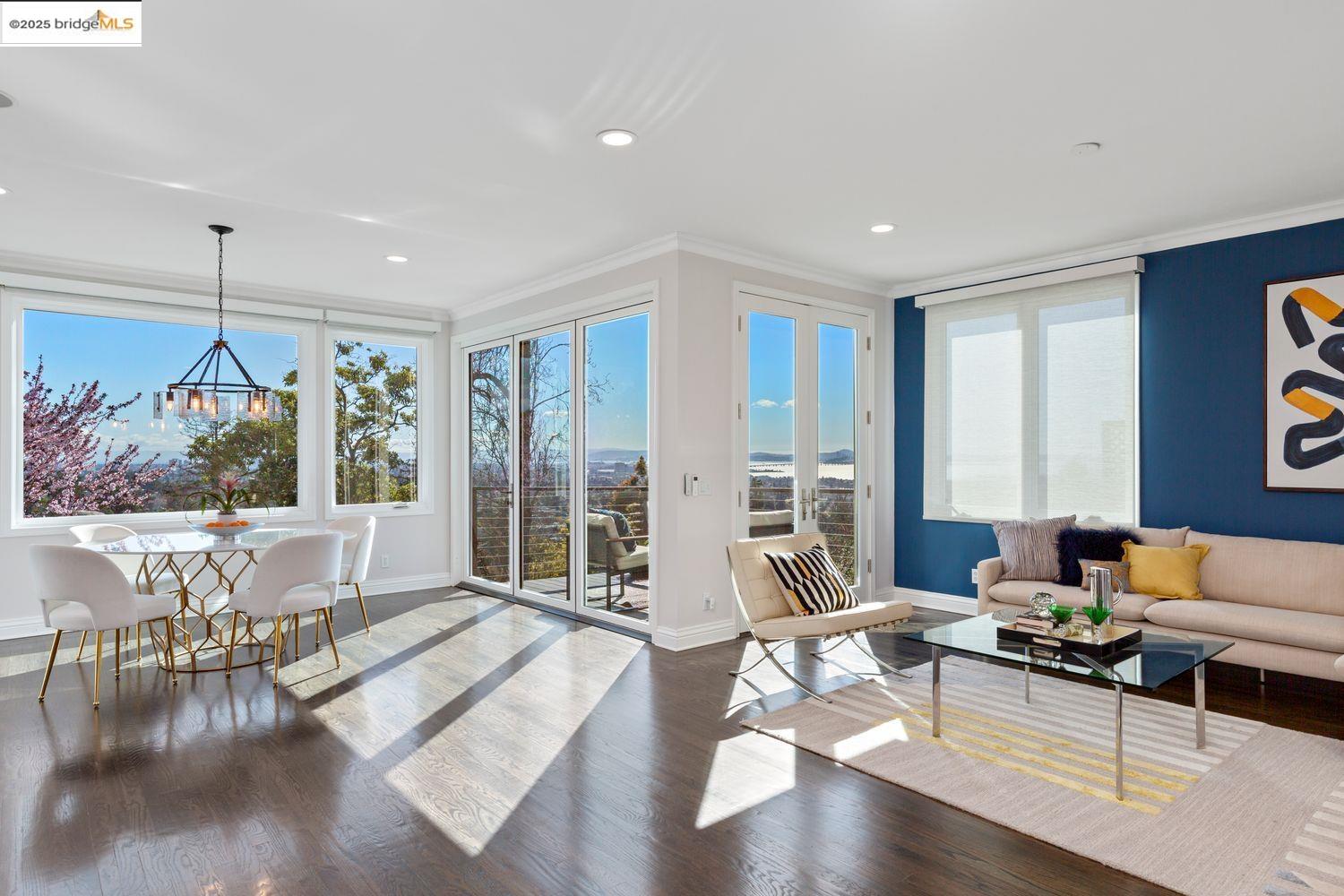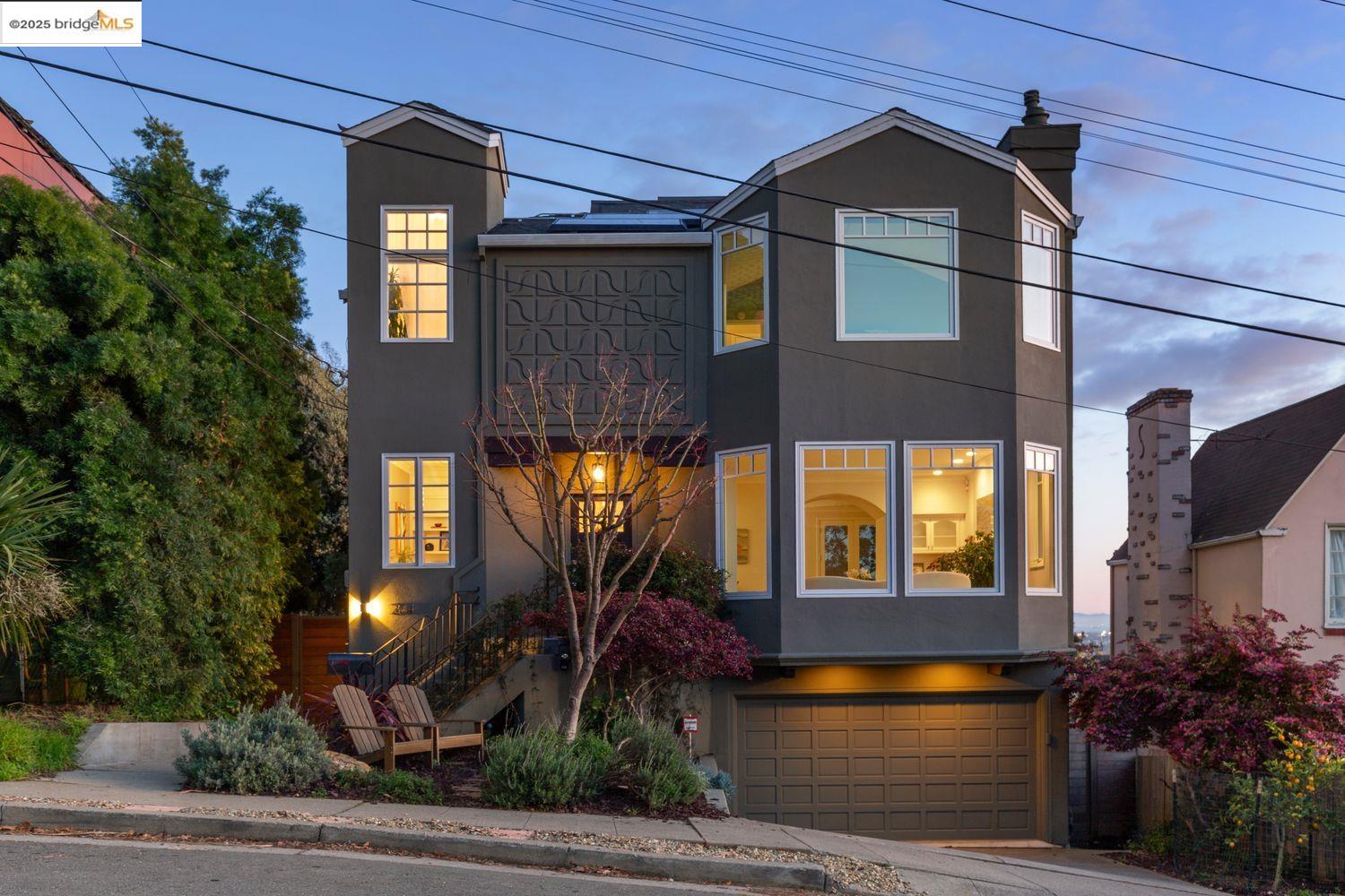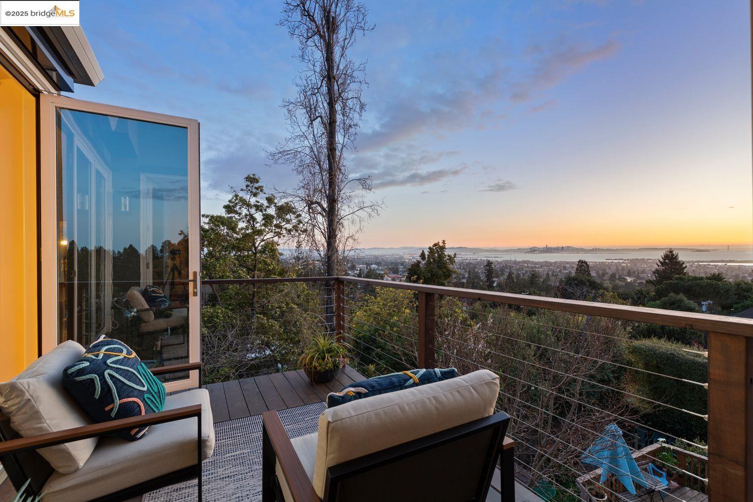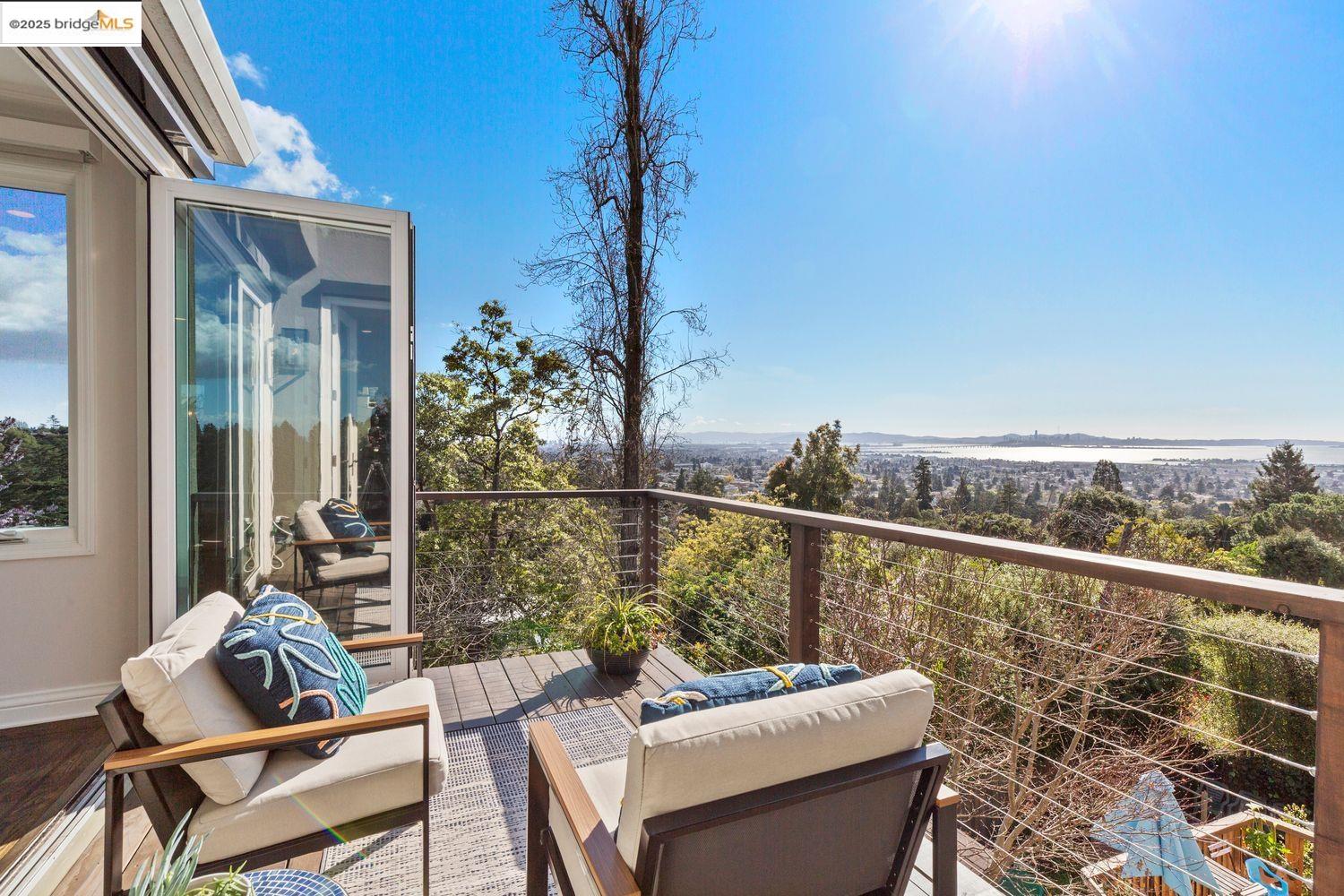 Breathtaking Bay, SF and Golden Gate views from nearly every room greet you in this expansive, nearly new contemporary Craftsman, steps from the Rose Garden and all that No. Berkeley, the Gourmet district, and Solano Ave. have to offer. Built in 1993 and extensively renovated over the past 5 years, timeless traditional architecture is elevated to 21st century standards, from the Alan Kropp-engineered foundation, through 10-foot ceilings w/elegant archways, to the Tesla solar system and many more Smart Home conveniences. The central foyer opens to a formal living room w/gas fireplace, built-in bar, and library walls, with a separate office on the opposite side. But you'll be drawn straight ahead to the view, gracing the open-space kitchen-dining-family room through walls of windows and telescoping patio doors. Upstairs, a luxurious primary suite repeats the grandeur with bedroom, sitting room and newly remodeled bath framing the view. Two more generously sized bedrooms and remodeled hall bath w/laundry complete the upstairs, with delightful views at every turn. The separate entry, walk-out lower level is fully equipped as a studio apt. for family or to rent out: 4th bedroom, full bath, kitchenette and dedicated laundry. Oversized 2-car garage provides storage and shop space.
