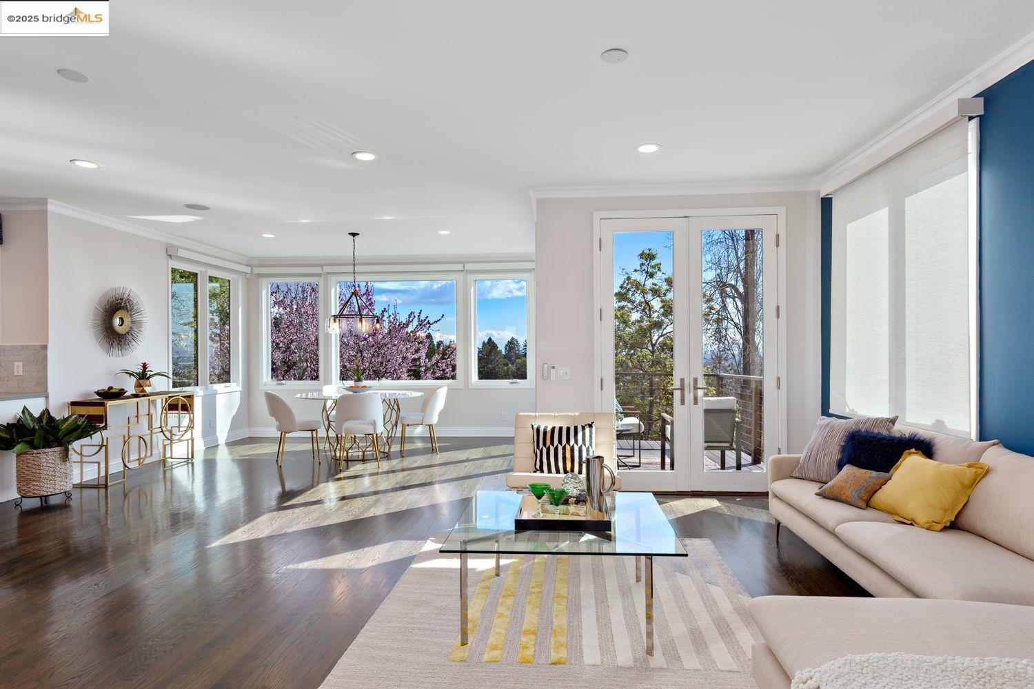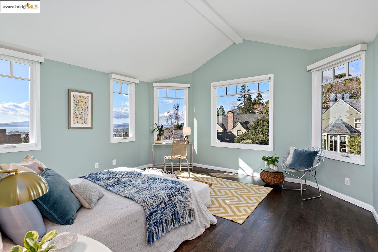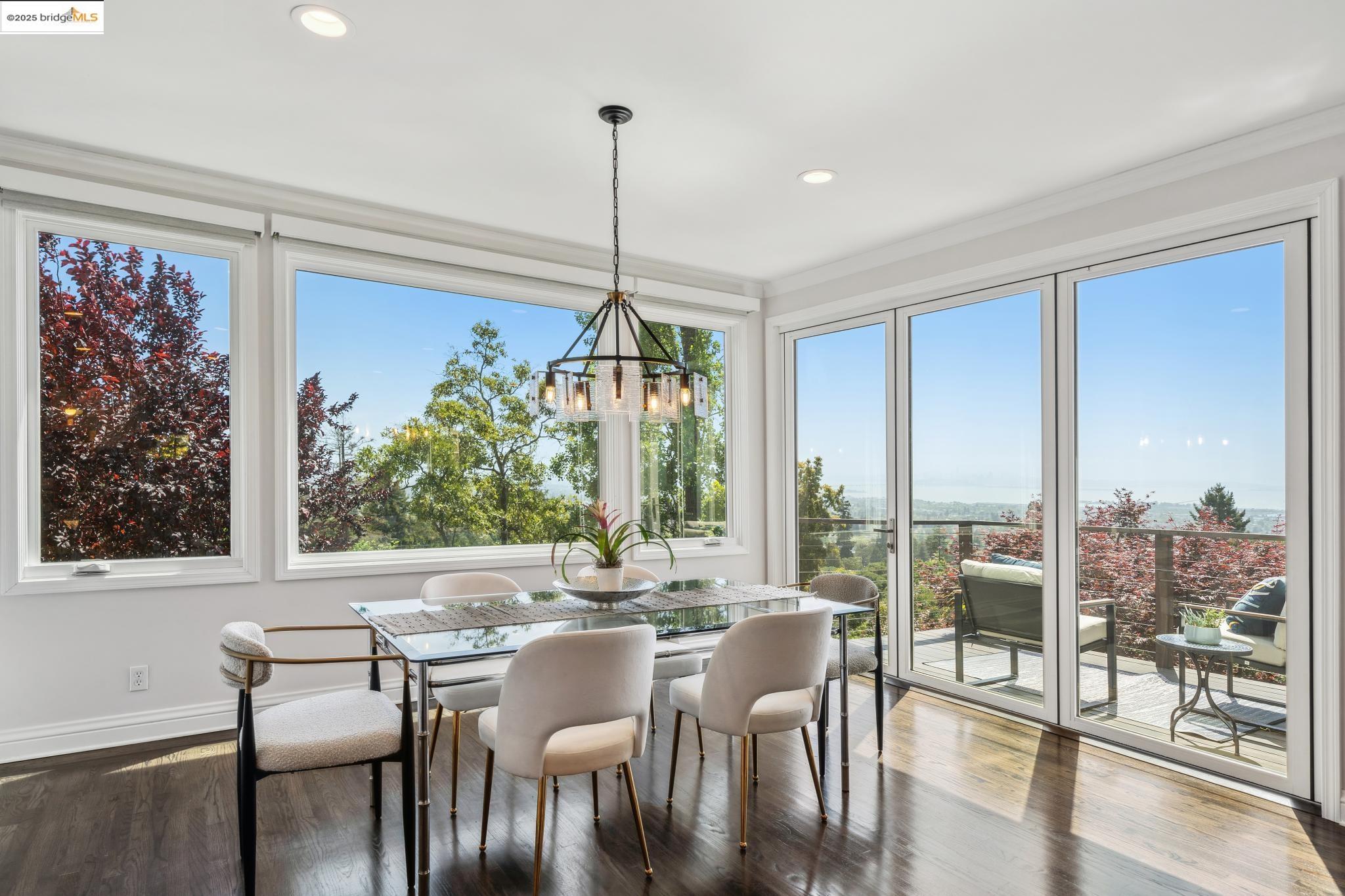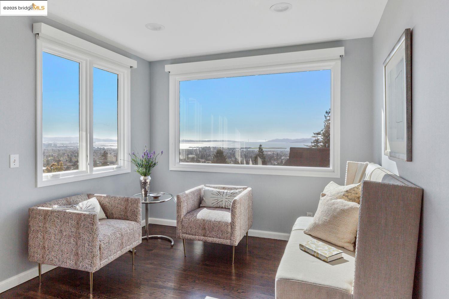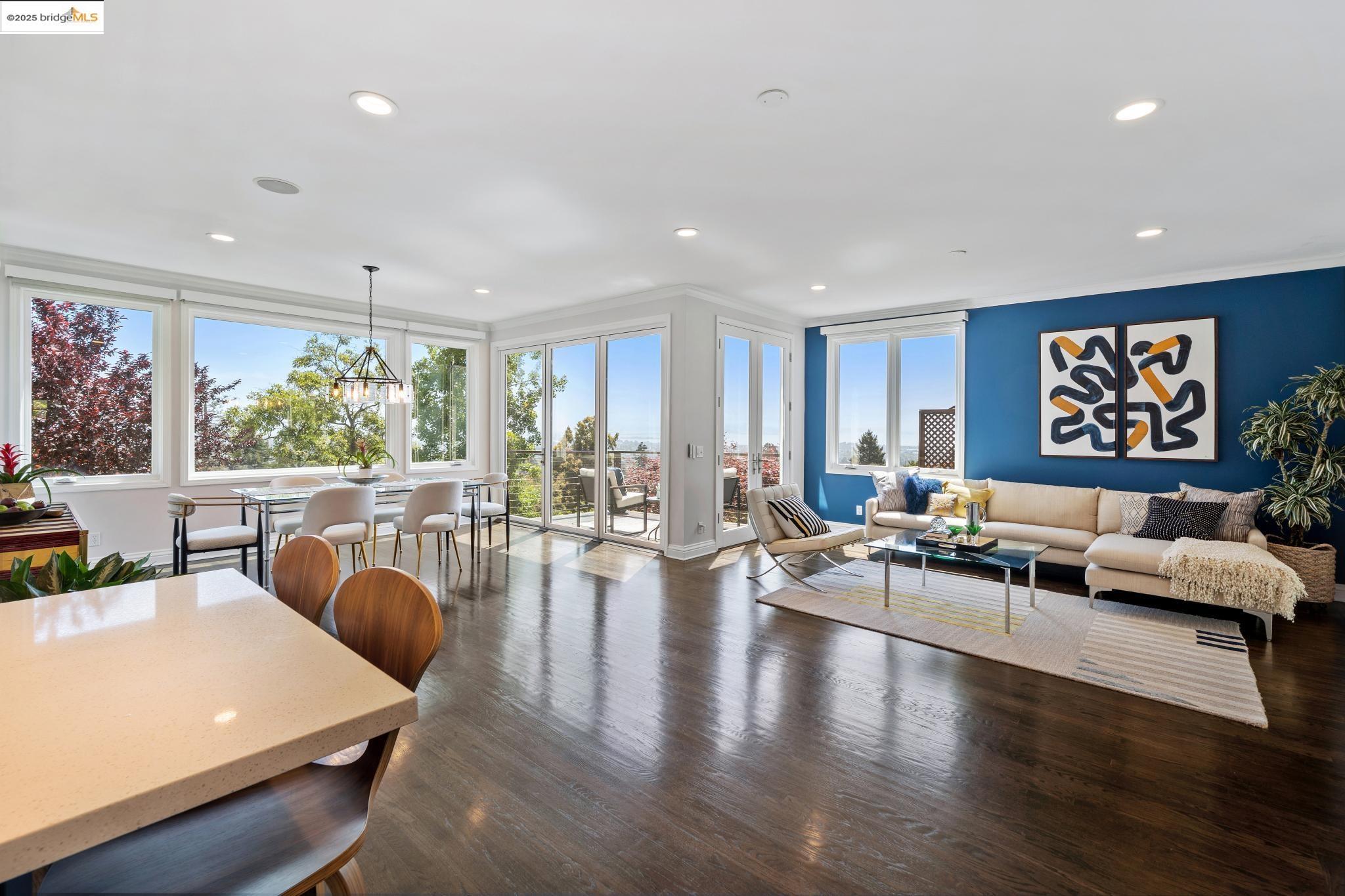 Breathtaking Bay, SF and Golden Gate views from nearly every room greet you in this expansive, nearly new contemporary Craftsman, steps from the Rose Garden and all that No. Berkeley, the Gourmet district, and Solano Ave. have to offer. Built in 1993 and extensively renovated over the past 5 years, timeless traditional architecture is elevated to 21st century standards, from the Alan Kropp-engineered foundation, through 10-foot ceilings w/elegant archways, to the Tesla solar system and many more Smart Home conveniences. The central foyer opens to a formal living room w/gas fireplace, built-in bar, and library walls, with a separate office on the opposite side. But you'll be drawn straight ahead to the view, gracing the open-space kitchen-dining-family room through walls of windows and telescoping patio doors. Upstairs, a luxurious primary suite repeats the grandeur with bedroom, sitting room and newly remodeled bath framing the view. Two more generously sized bedrooms and remodeled hall bath w/laundry complete the upstairs, with delightful views at every turn. The separate entry, walk-out lower level is fully equipped as a studio apt. for family or to rent out: 4th bedroom, full bath, kitchenette and dedicated laundry. Oversized 2-car garage provides storage and shop space.