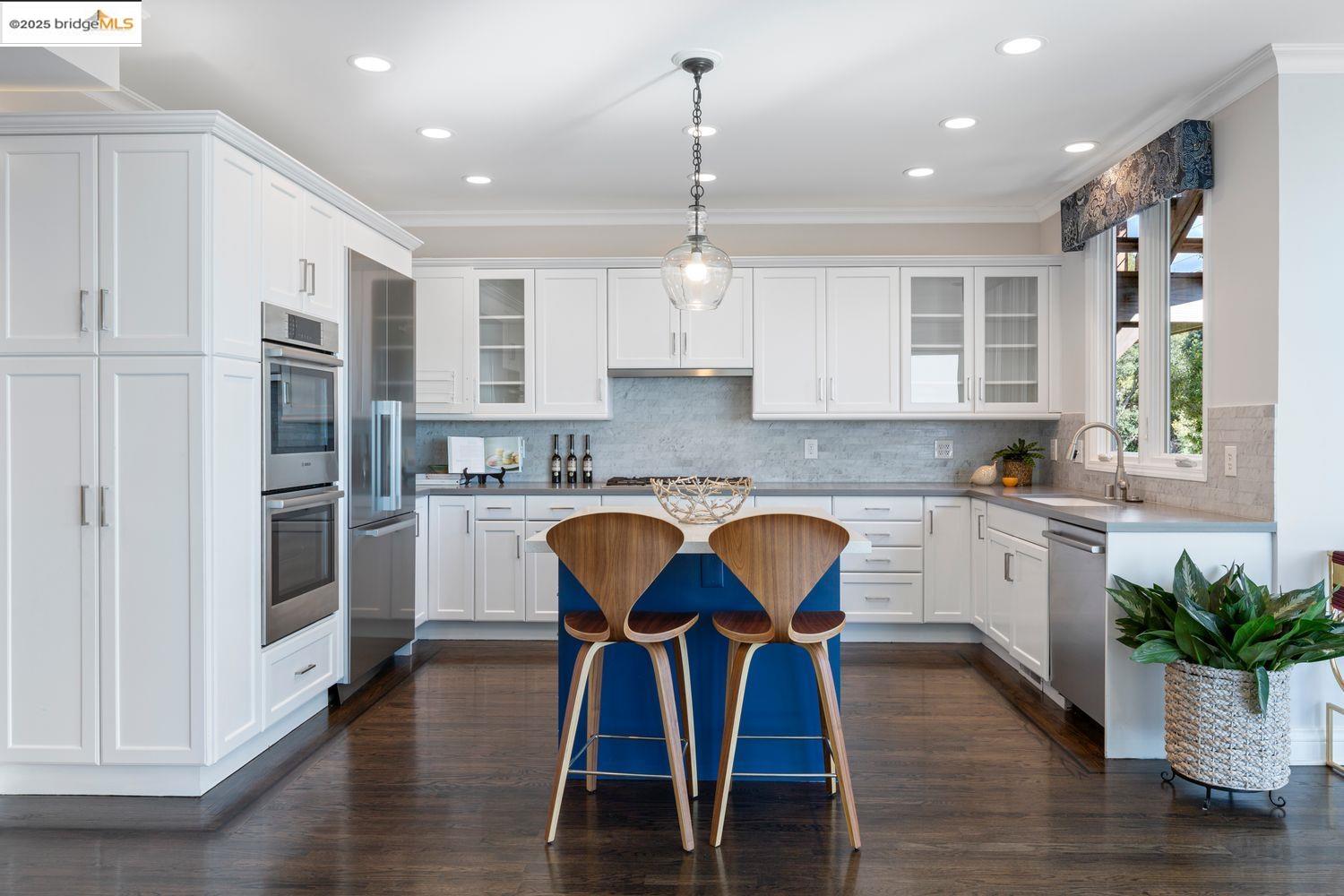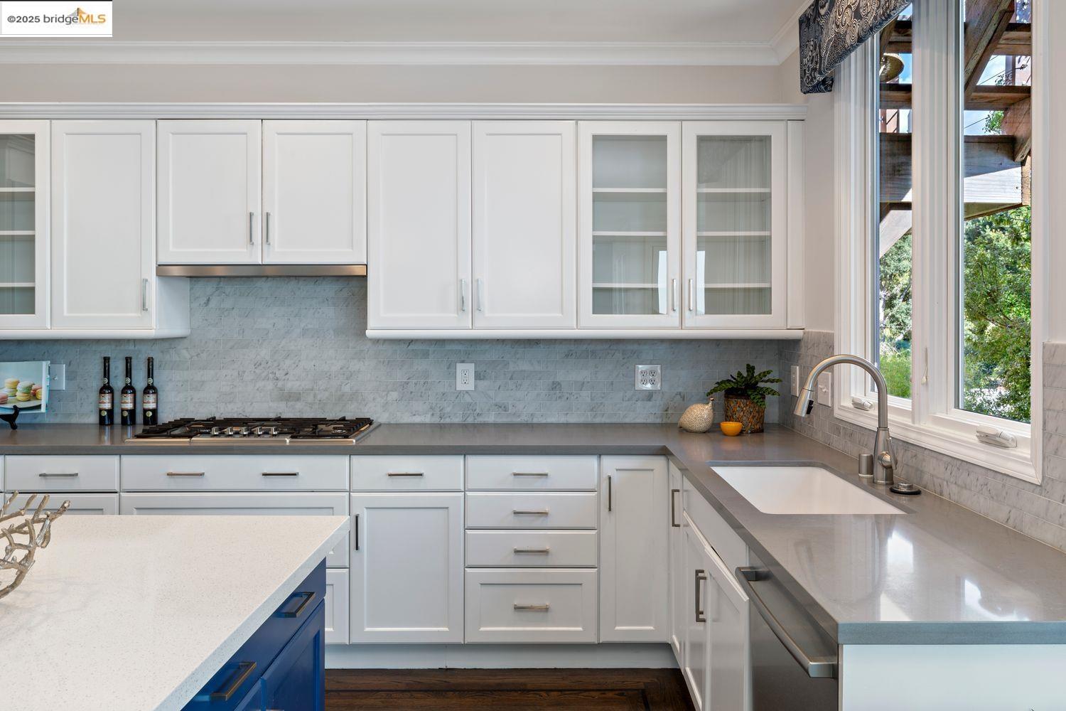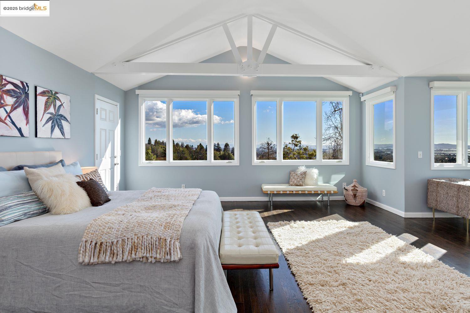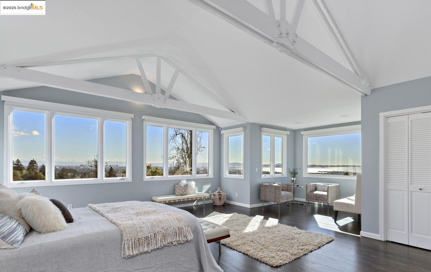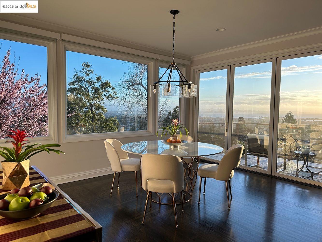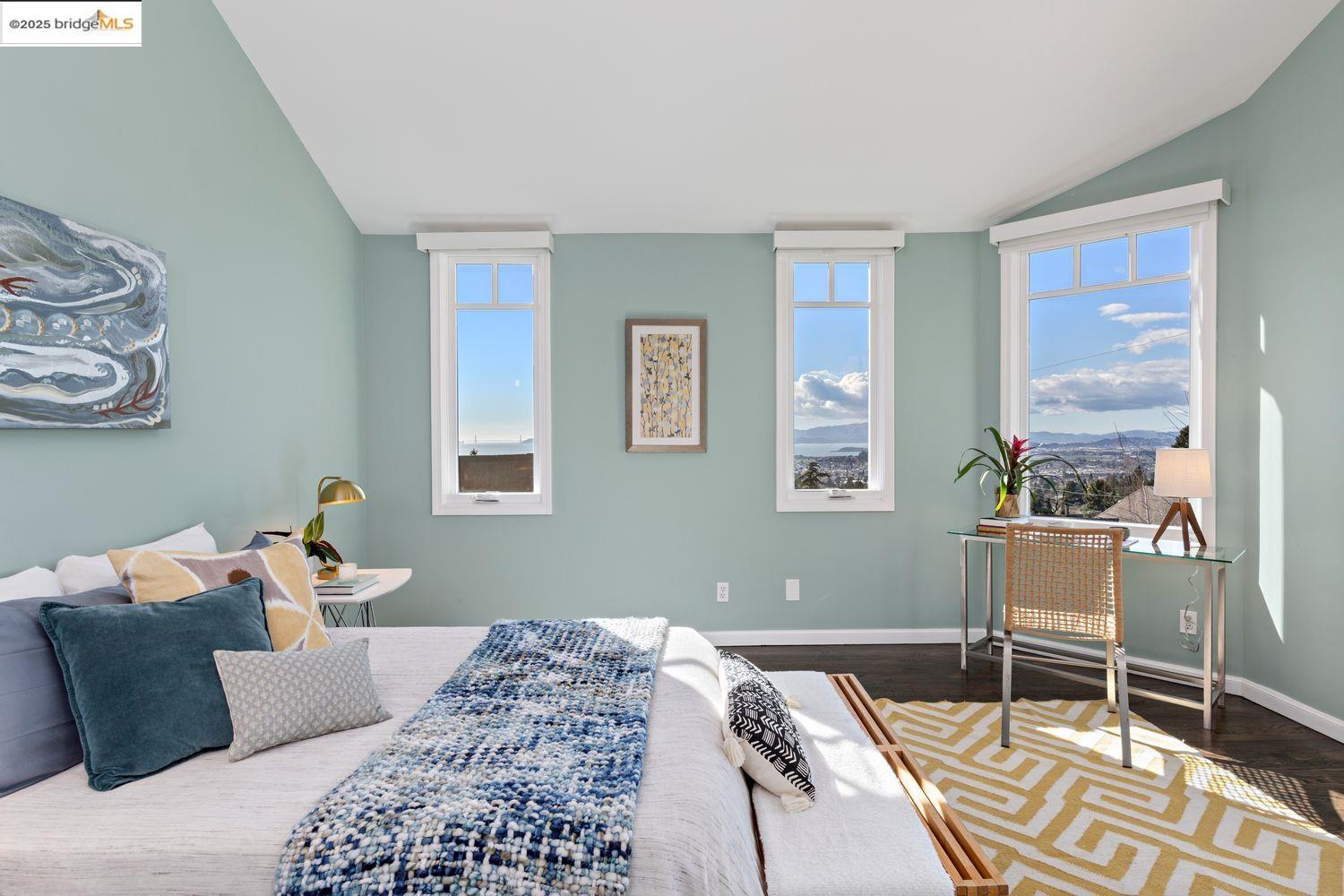Breathtaking Bay, SF and Golden Gate views from nearly every room greet you in this expansive, nearly new contemporary Craftsman, steps from the Rose Garden and all that No. Berkeley, the Gourmet district, and Solano Ave. have to offer. Built in 1993 and extensively renovated over the past 5 years, timeless traditional architecture is elevated to 21st century standards, from the Alan Kropp-engineered foundation, through 10-foot ceilings w/elegant archways, to the Tesla solar system and many more Smart Home conveniences. The central foyer opens to a formal living room w/gas fireplace, built-in bar, and library walls, with a separate office on the opposite side. But you'll be drawn straight ahead to the view, gracing the open-space kitchen-dining-family room through walls of windows and telescoping patio doors. Upstairs, a luxurious primary suite repeats the grandeur with bedroom, sitting room and newly remodeled bath framing the view. Two more generously sized bedrooms and remodeled hall bath w/laundry complete the upstairs, with delightful views at every turn. The separate entry, walk-out lower level is fully equipped as a studio apt. for family or to rent out: 4th bedroom, full bath, kitchenette and dedicated laundry. Oversized 2-car garage provides storage and shop space.