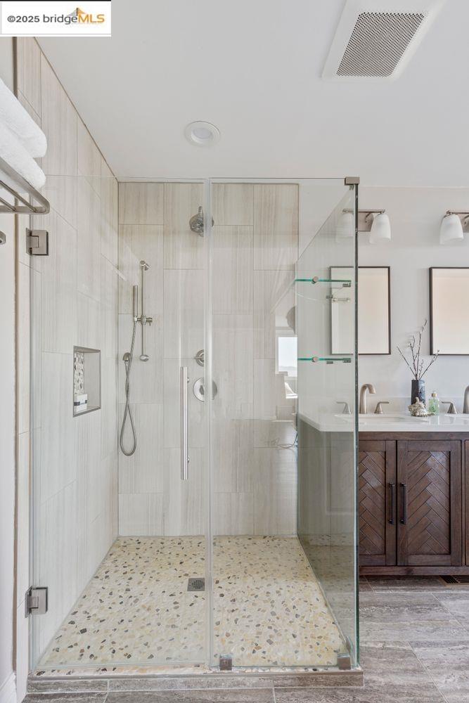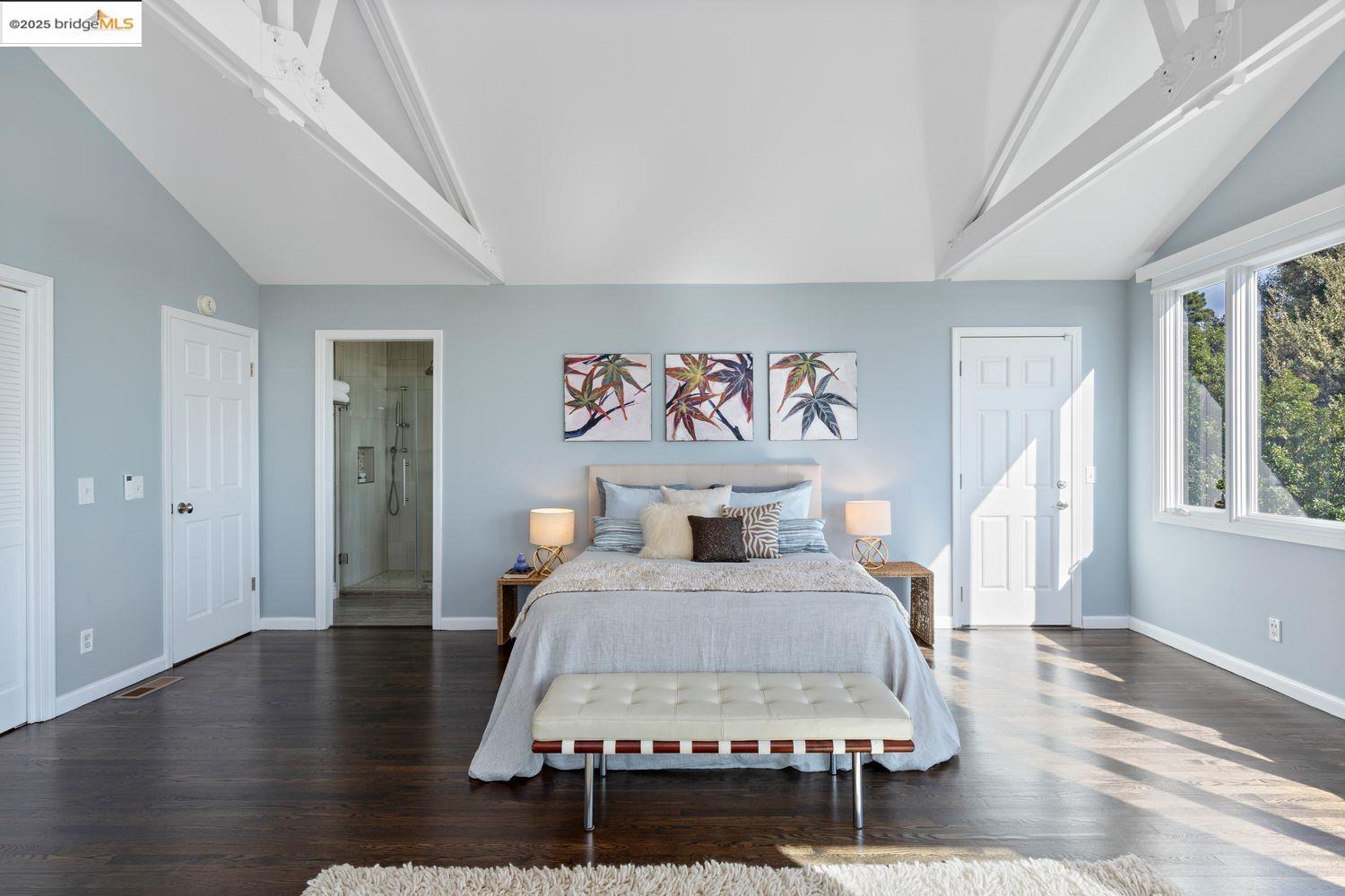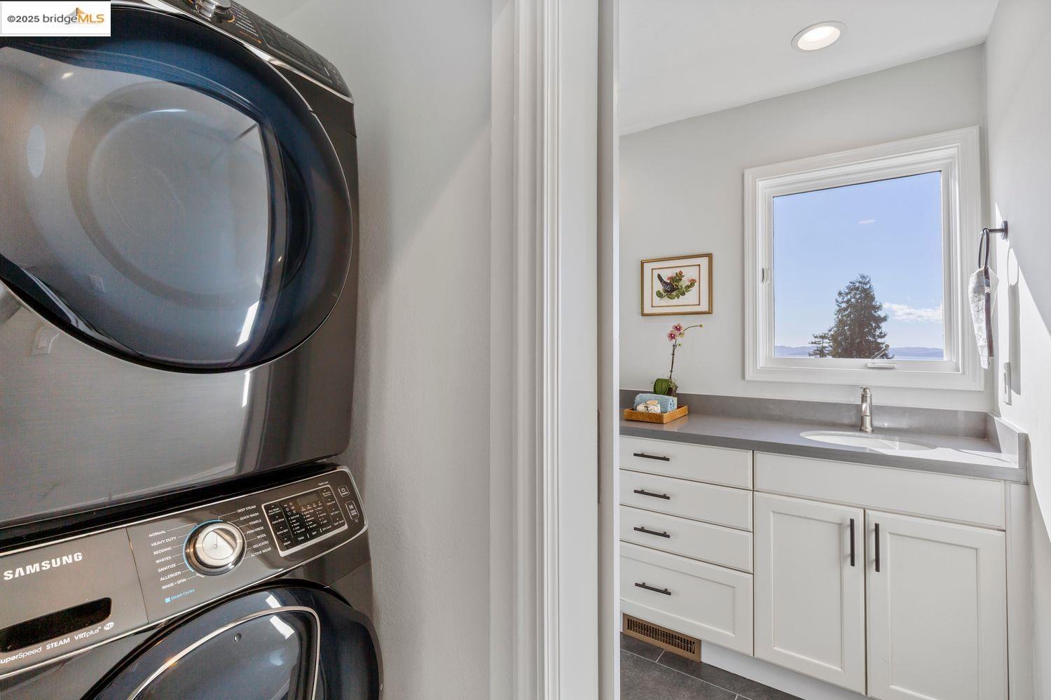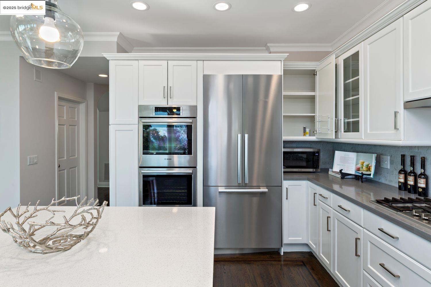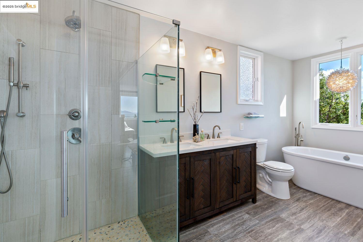 Breathtaking Bay, SF and Golden Gate views from nearly every room greet you in this expansive, nearly new contemporary Craftsman, steps from the Rose Garden and all that No. Berkeley, the Gourmet district, and Solano Ave. have to offer. Built in 1993 and extensively renovated over the past 5 years, timeless traditional architecture is elevated to 21st century standards, from the Alan Kropp-engineered foundation, through 10-foot ceilings w/elegant archways, to the Tesla solar system and many more Smart Home conveniences. The central foyer opens to a formal living room w/gas fireplace, built-in bar, and library walls, with a separate office on the opposite side. But you'll be drawn straight ahead to the view, gracing the open-space kitchen-dining-family room through walls of windows and telescoping patio doors. Upstairs, a luxurious primary suite repeats the grandeur with bedroom, sitting room and newly remodeled bath framing the view. Two more generously sized bedrooms and remodeled hall bath w/laundry complete the upstairs, with delightful views at every turn. The separate entry, walk-out lower level is fully equipped as a studio apt. for family or to rent out: 4th bedroom, full bath, kitchenette and dedicated laundry. Oversized 2-car garage provides storage and shop space.