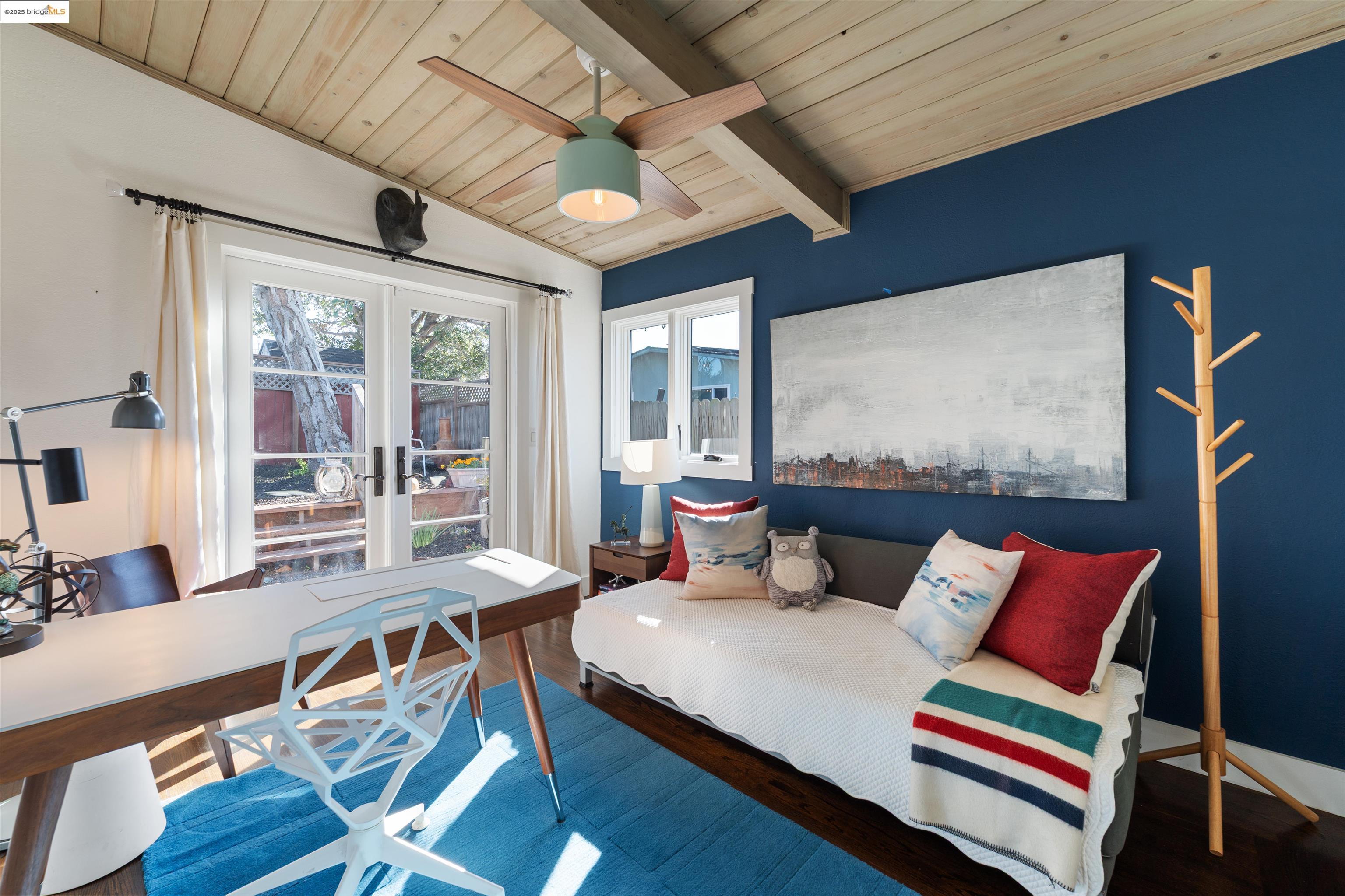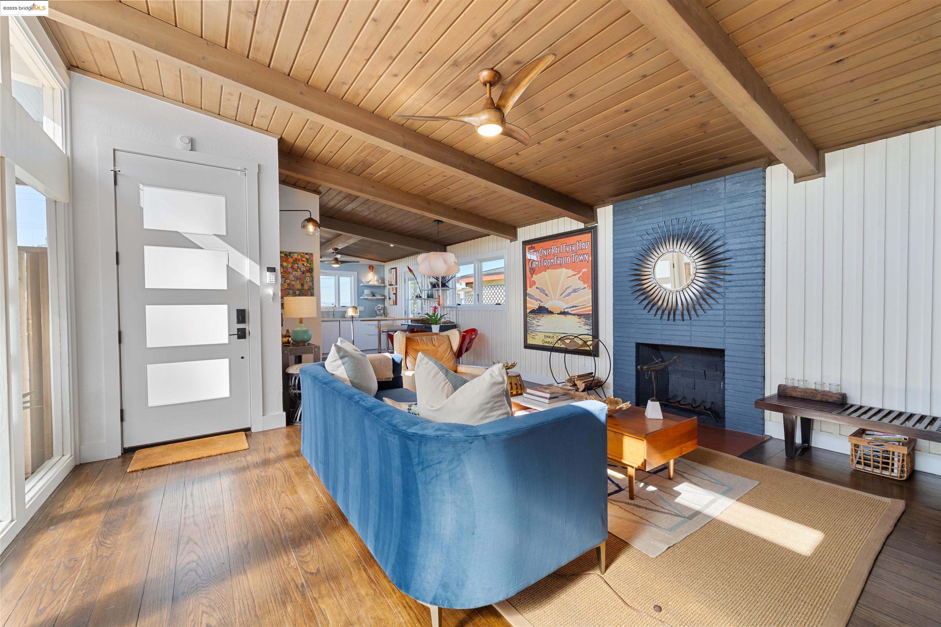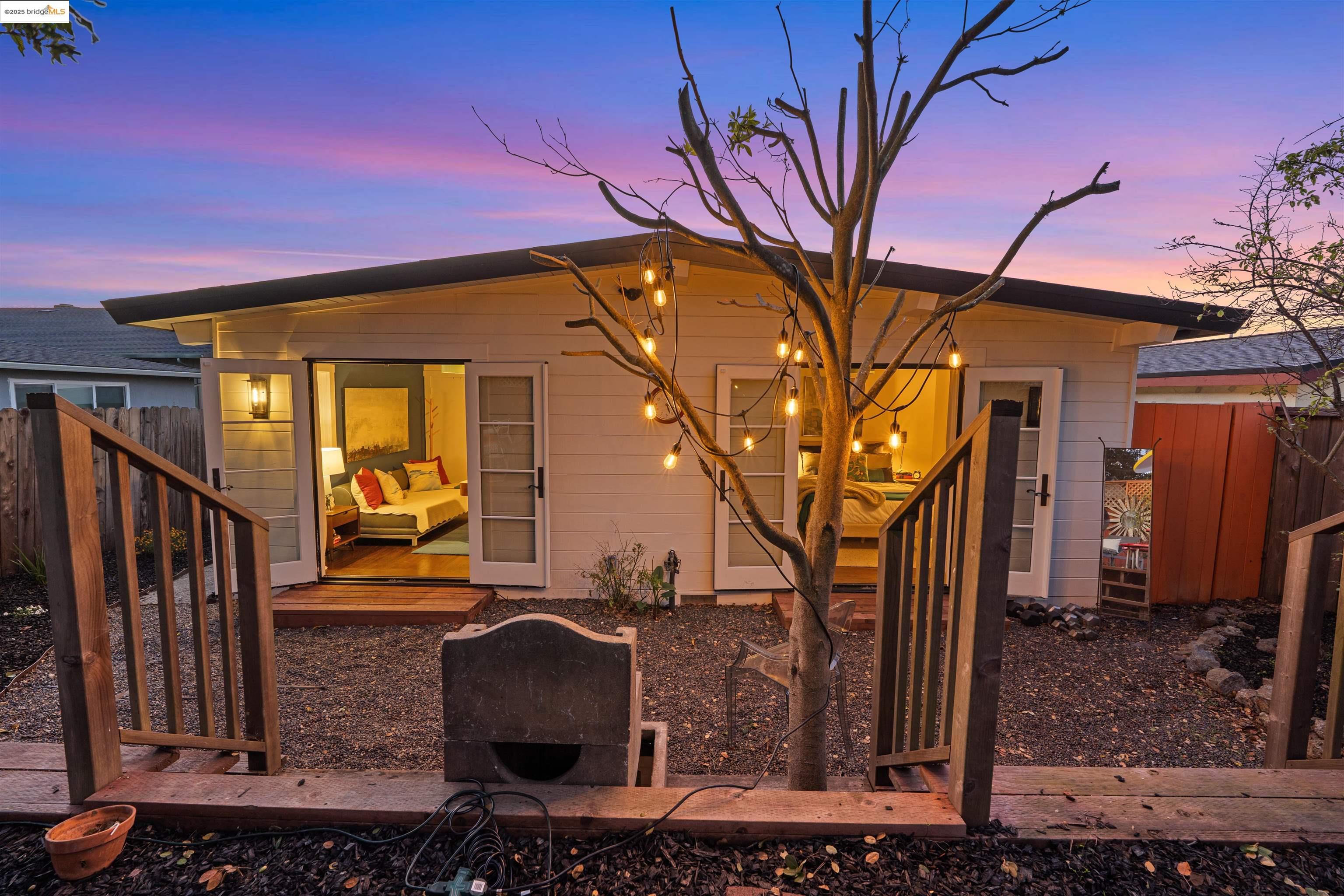 Sharp Mid-Century to-the-studs remodel with Bay/City views, mostly level yard, fantastic indoor-outdoor flow, and Style (with a capital "S"). Step in to the open concept living-dining-kitchen with vaulted wood-beam ceilings. Step right back outside through full-glass living room doors to the outdoor kitchen/covered patio, through a kitchen door to a side deck for grilling, or through french doors opening bedrooms to the backyard. Owned and remodeled by a local designer, standout accents range from the Smeg refrigerator in Golden Gate orange, to Euro-modern soft-close cabinets, to the walk-in pantry and 60s-inspired lighting. Custom tiled remodeled bath is on your way back to 3 main-floor bedrooms. The yard is replete with flowing fountain for zen moments, a classic chiminea for roasting marshmallows, and an authentic red-yellow In-n-Out picnic table. New within the past 5 years: all appliances, exterior doors and dual-pane windows (Anderson and Marvin), furnace, tankless water heater and roof. Washer/drier included and most furnishings and accents are available for purchase. Carport with shed-- perfect for a small workshop. Move into your dream home for the holidays!!